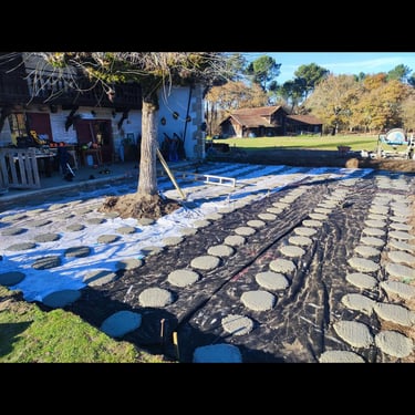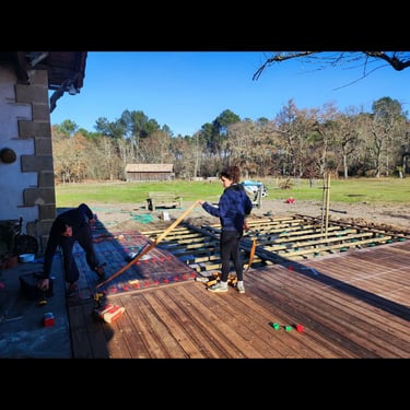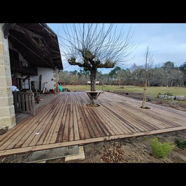 Création d'une terrasse pour le restaurant "La Terrasse" situé dans la ferme des filles, à Captieux.
