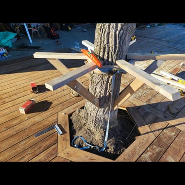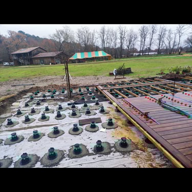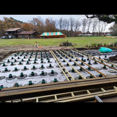 Nous commençons par terrasser la zone, et implantons minutieusement le platelage de la térrasse.