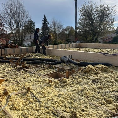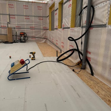 Isolation en laine de bois, étanchéité à l'eau et à l'air, et couverture.