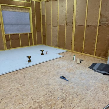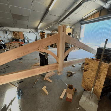 Puis Pose des lamellés collés, du solivage, et du planché.
